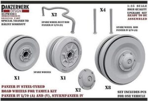 1/35 IV号戦車用・鋼製転輪8個&予備転輪及び予備転輪ラック・タミヤ ディティールアップパーツ [WR35220-01]