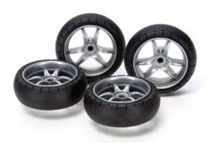 スーパーハードローハイトタイヤ&レッドメッキ5本スポークホイール ネオVQS 「ミニ四駆グレードアップパーツシリーズ」 イベント会場商品 [95592] メーカー:タミヤ シリーズ:ミニ四駆 定価:¥396