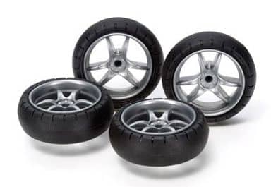 大径Vスポークナローホイール (バレルタイヤ付) 「ミニ四駆グレードアップパーツシリーズ No.491」 [15491]