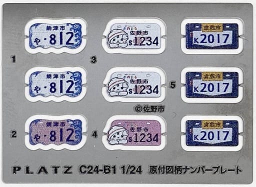 Home  >  商品一覧  >  1/24 原付用図柄ナンバープレート (焼津市・佐野市・倉敷市) エッチングパーツ [C24-B1]