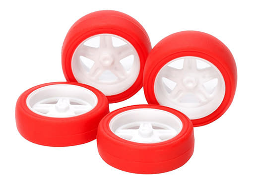 1/32 スーパーX・XX 大径5本スポークホイール&ハードスリックタイヤ(レッド) 「ミニ四駆グレードアップパーツシリーズ No.504」 [15504]