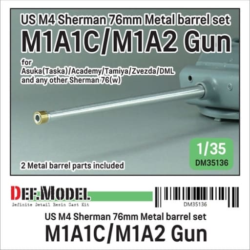 1/35 WWII アメリカ M4シャーマン76(W) 76mm M1A1C/M1A2砲 金属砲身(各社用) ディティールアップパーツ [DM35136]