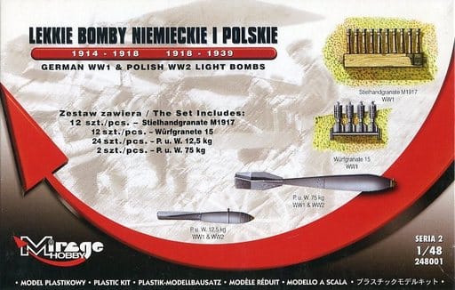 1/48 ドイツ空軍のWWIとポーランド軍のWWII軽飛行機用の爆弾 1914-1918年、1918-1920年 ディティールアップパーツ [MIR248001]