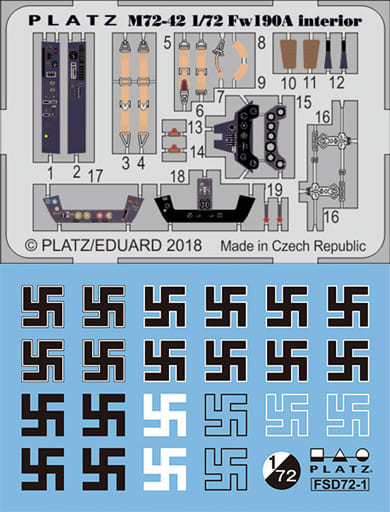 1/72 フォッケウルフ Fw190A用 エッチング(内装)&スワスチカデカールセット(対応キット:エフトイズ・フルアクションFw190Aなど) [M72-42]